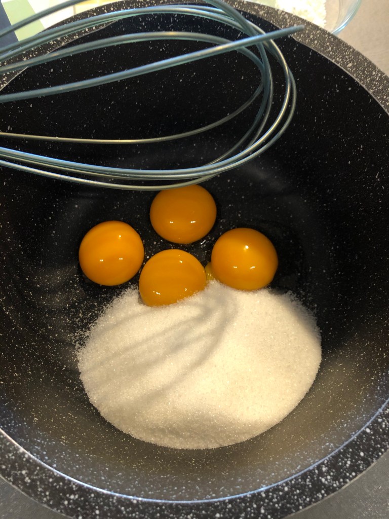 Preparo anche il giorno prima il Pan di Spagna seguendo la ricetta sul blog, se lo preparate il giorno prima quando é freddo avvolgetelo nella pellicola e tenetelo in un luogo fresco