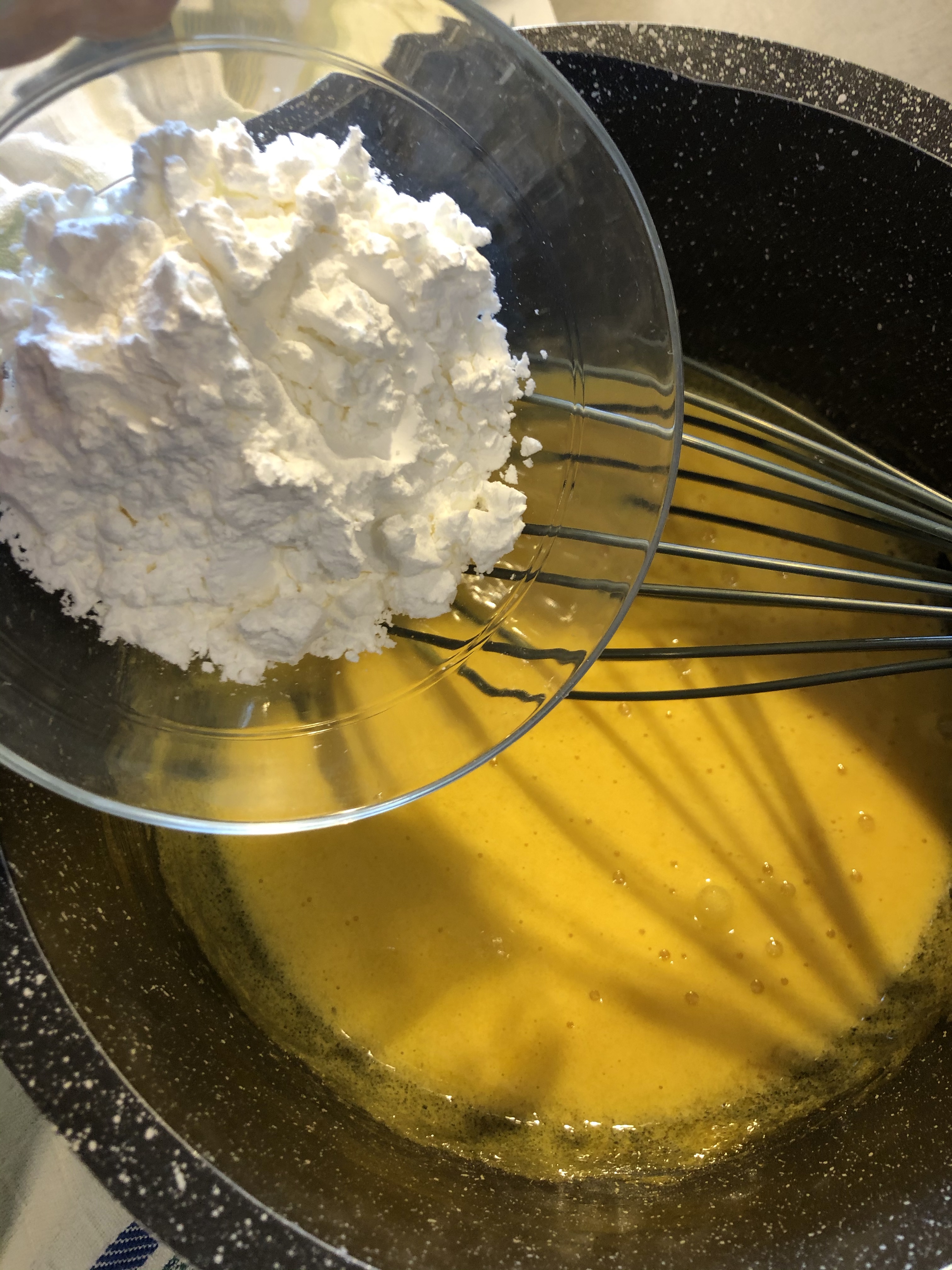 La crema deve addensare, un paio di minuti e tolgo dal fuoco, aggiungo il cioccolato, mescolo bene finché é sciolto e la crema risulta liscia e lucida