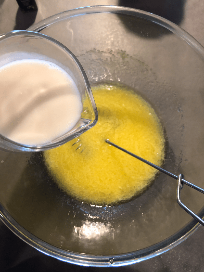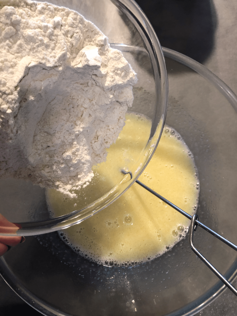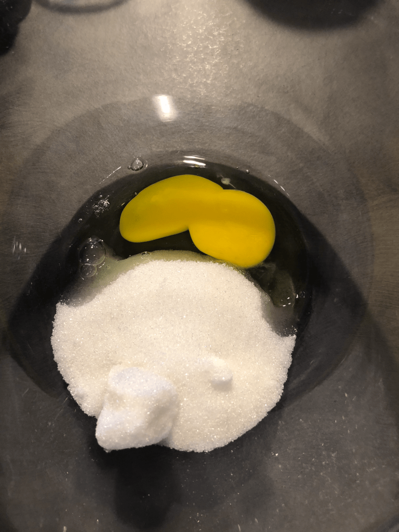 In una ciotola verso l’uovo con lo zucchero e mescolo con una frusta