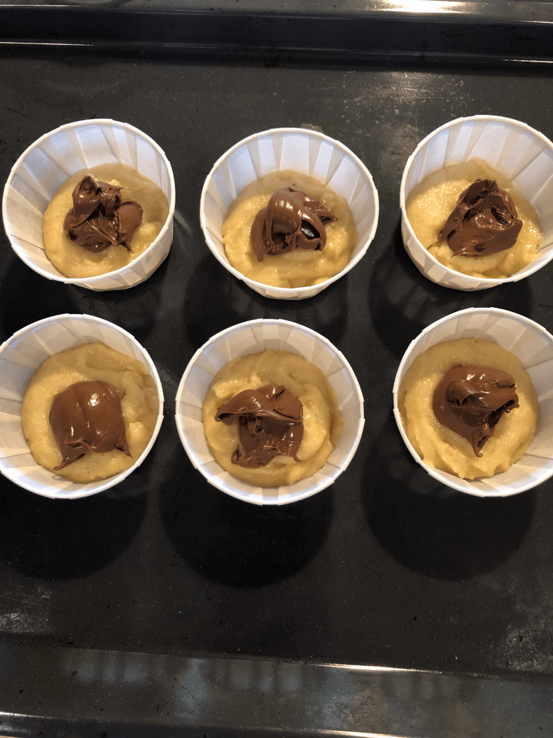 Al centro di ogni pirottino metto un cucchiaino di nutella