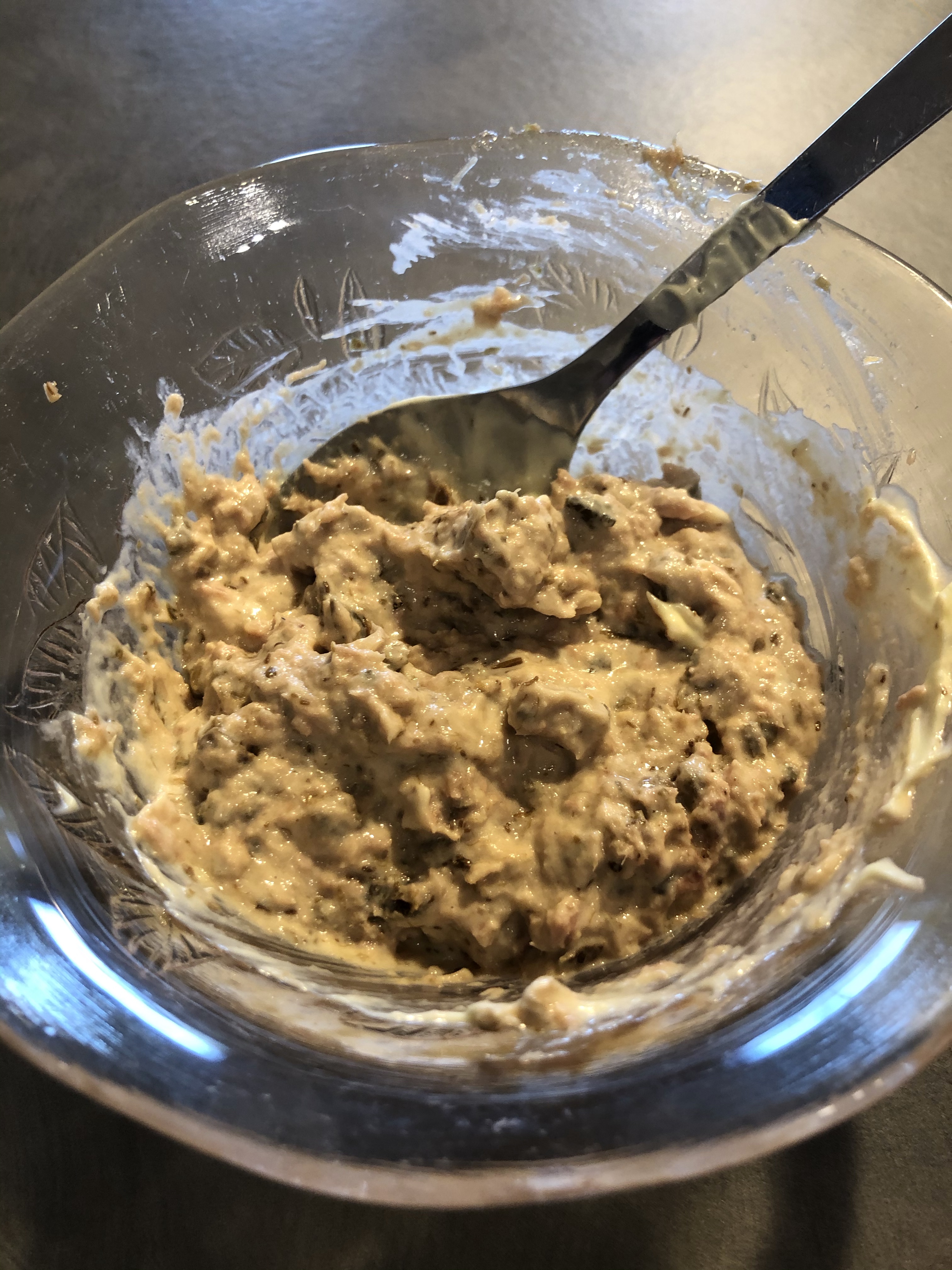 Li aggiungo al tonno e capperi e aggiungo un cucchiaino di senape