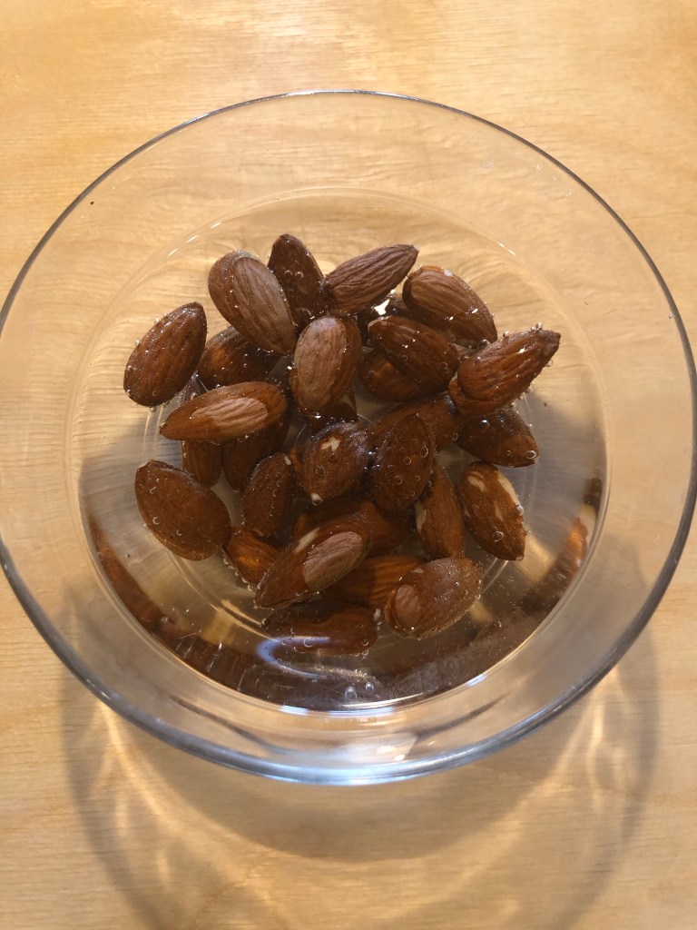 In una ciotolina metto le 36 mandorle con dell’acqua per idratarle