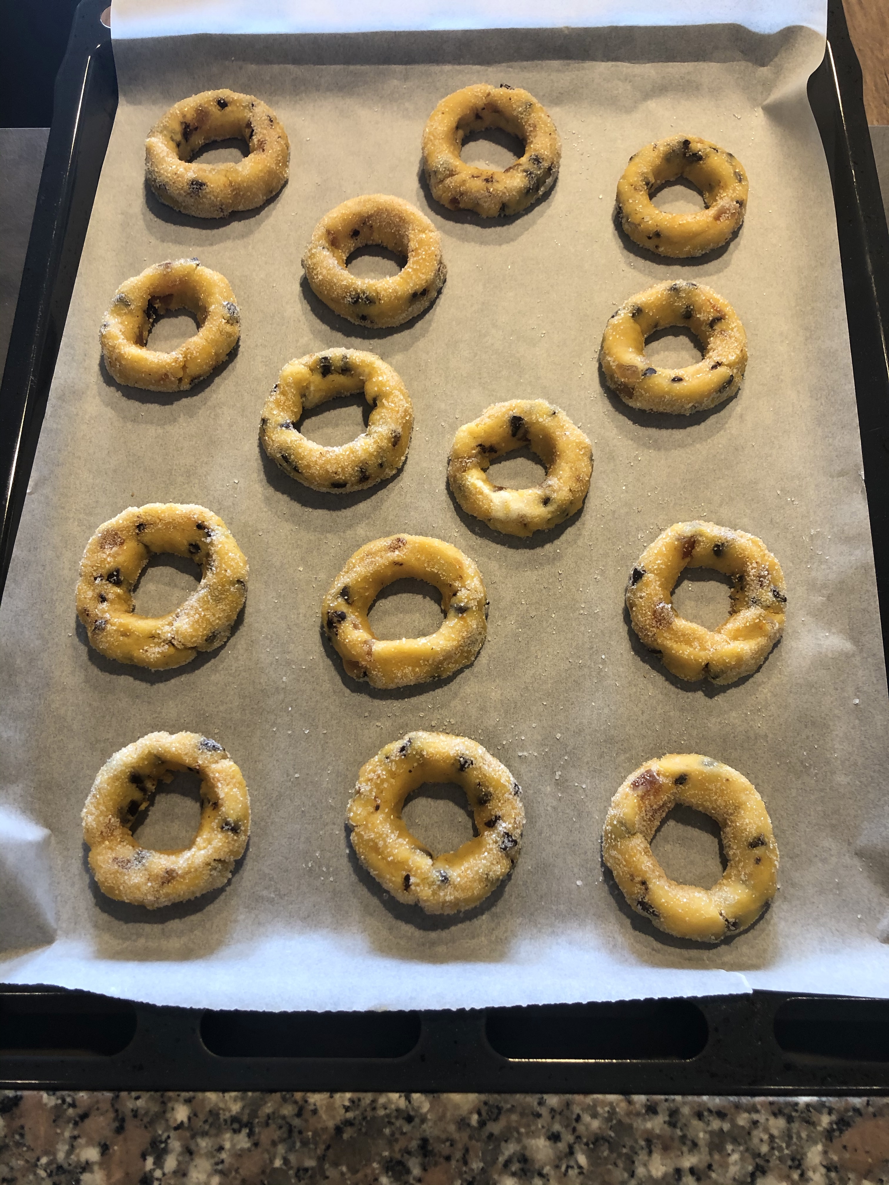 Avvolgo completamente le ciambelline nello zucchero sopra e sotto