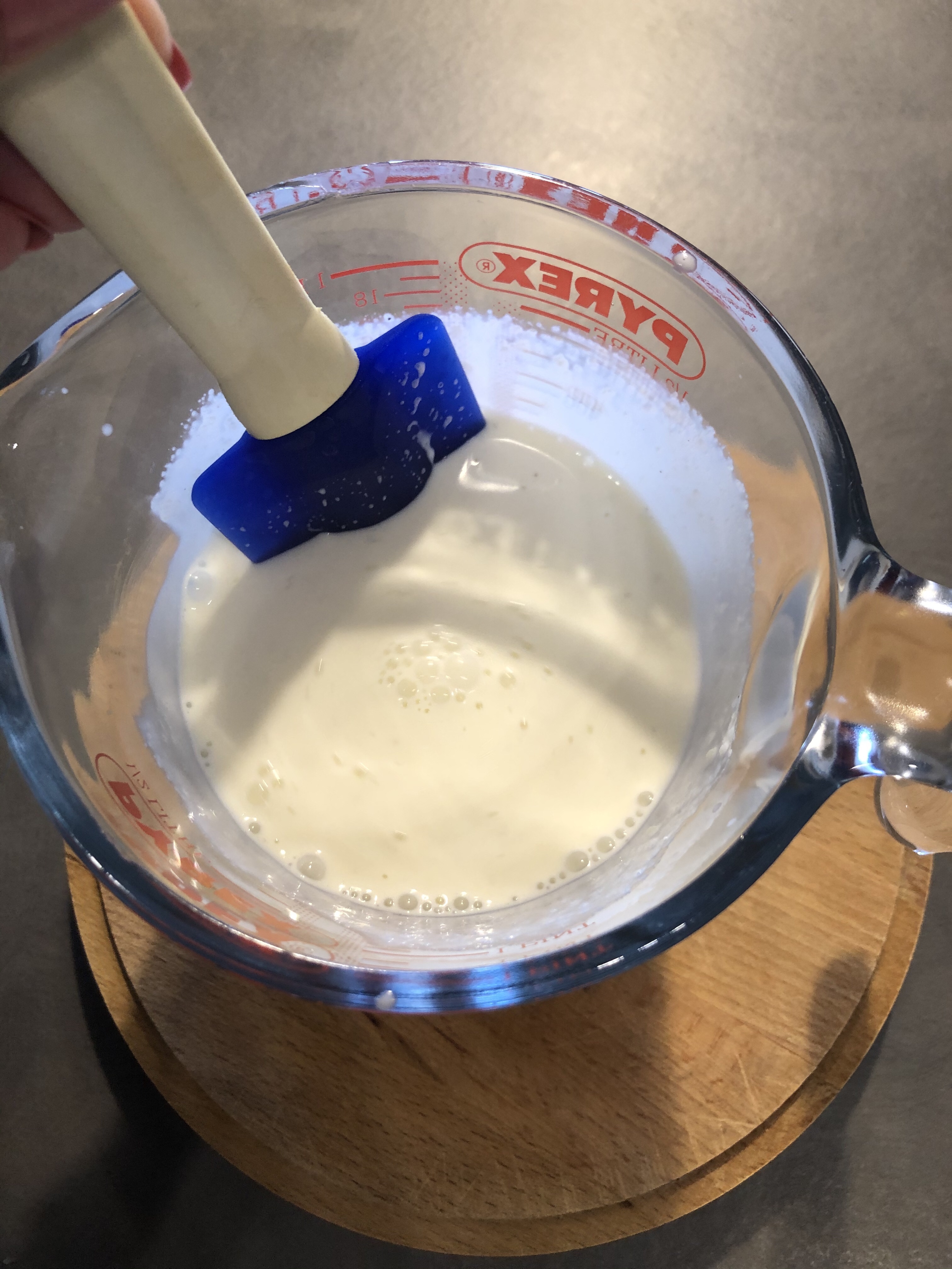 La scaldo senza farla bollire, tolgo dal fuoco e aggiungo un pizzico di sale e pepe