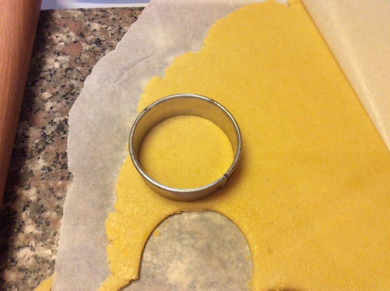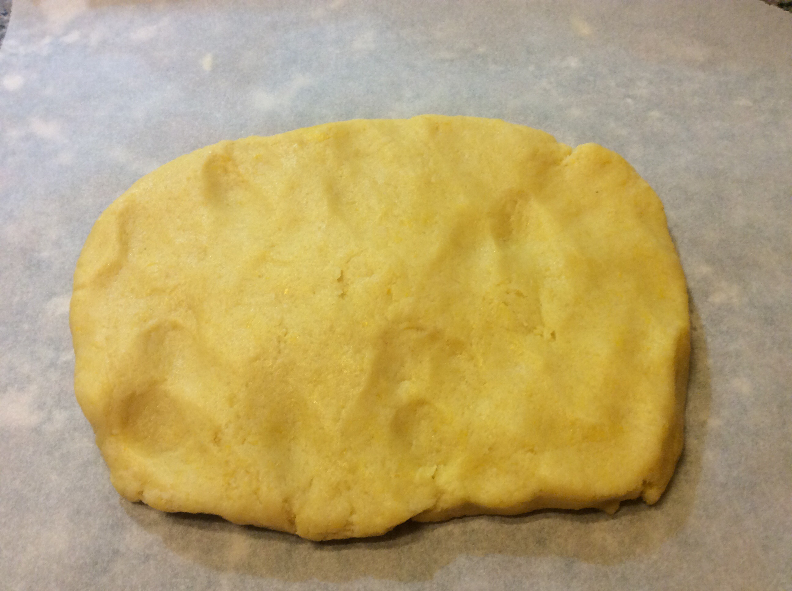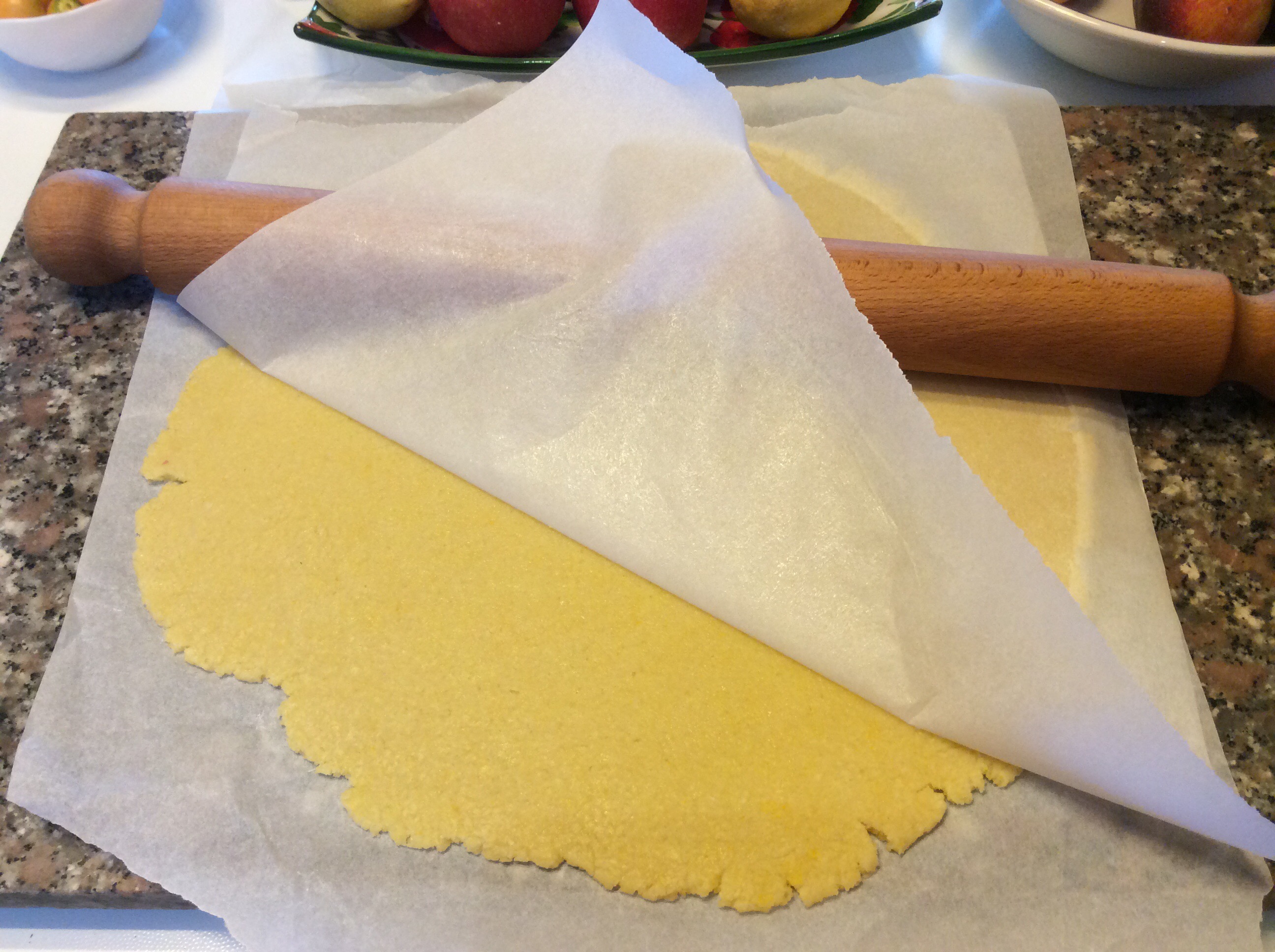 Stendo l’impasto tra due fogli di carta dello spessore di pochi millimetri