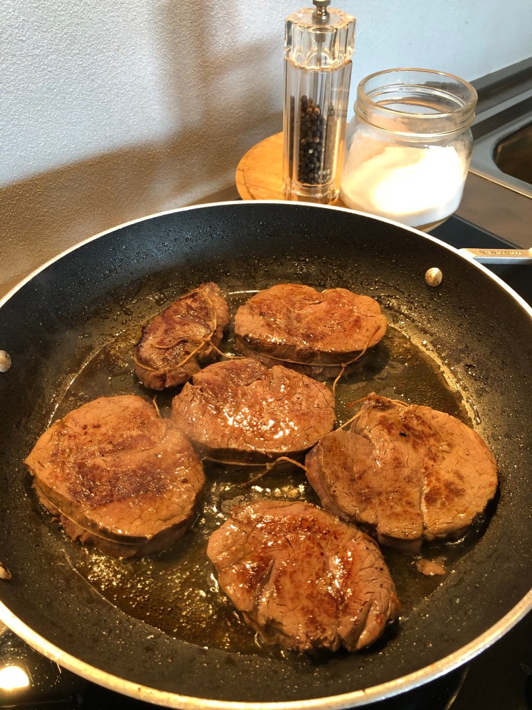 Poi li giro e cuocio dall’altro lato, io li preferisco al sangue, se li volete più cotti prolungate leggermente la cottura, ma non troppo, rischiate di rovinarli, un filetto troppo cotto diventa stopposo