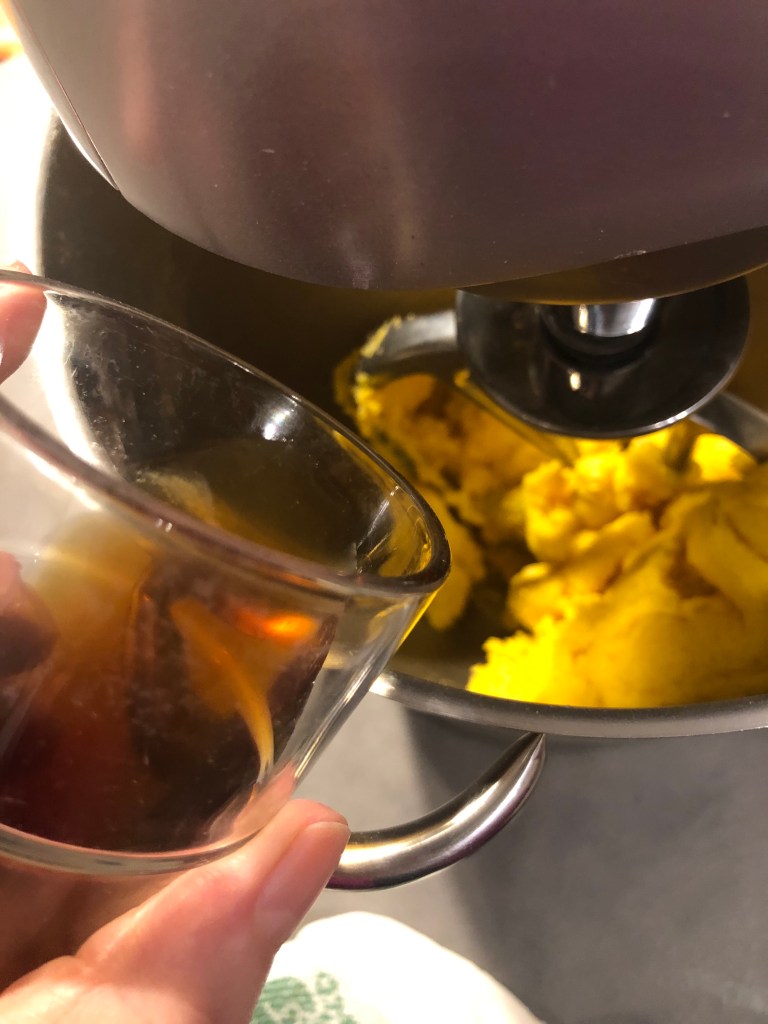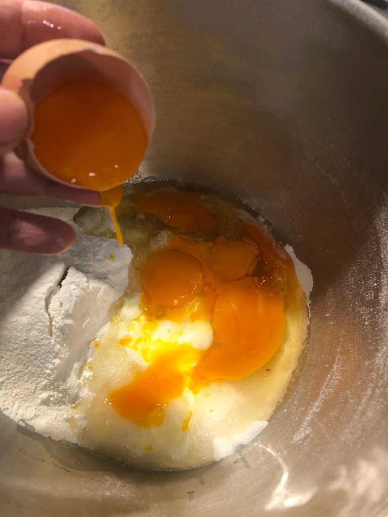 Inizio ad impastare con la foglia o a mano, aggiungo un goccio di Vin Santo, mi raccomando poco per volta, deve risultare un impasto morbido ma non appiccicoso, la dose dipenderà dal peso delle uova e dall’assorbimento della farina
