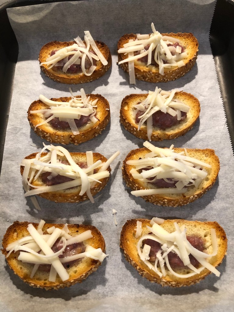 Dei semplici crostini rustici, senza pretese ma buonissimi per un aperitivo, facilissimi da preparare, croccanti e saporiti