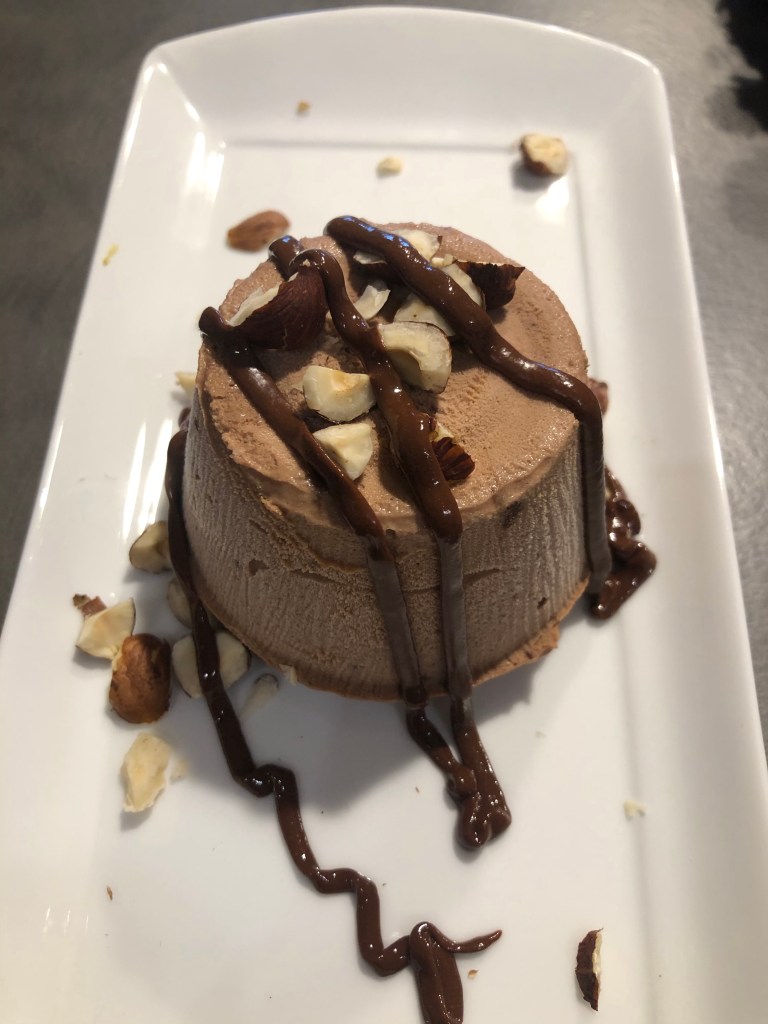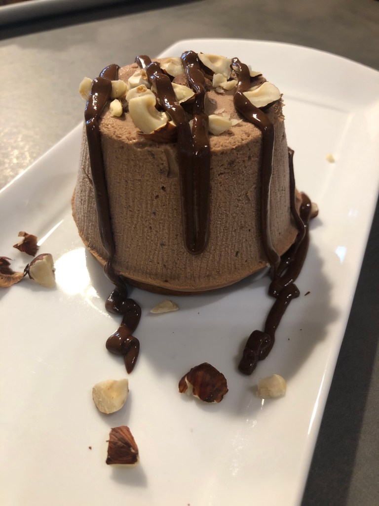 Metto in freezer per almeno 4 ore, al momento di servirli li cospargo con nocciole tritate e con del cioccolato fondente sciolto a microonde