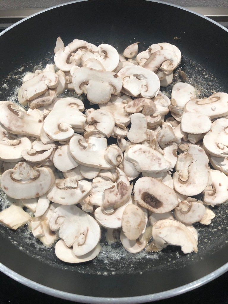 Taglio i funghi dopo averli puliti accuratamente e li verso in padella con un goccio di olio
