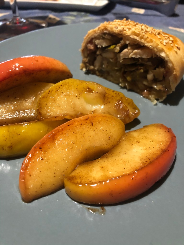 Potete accompagnarlo con patate o le verdure che preferite, ma con le mele caramellate diventa super