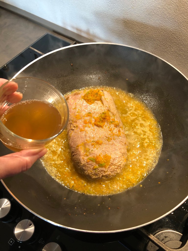 Lascio cuocere ancora una mezz’ora, pungo la carne per verificare la cottura, deve essere morbidissima