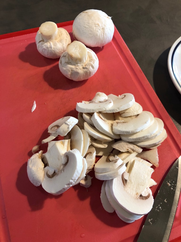 Pulisco i funghi togliendo la parte terrosa e anche la pellicina che ricopre i funghi e li taglio a fettine