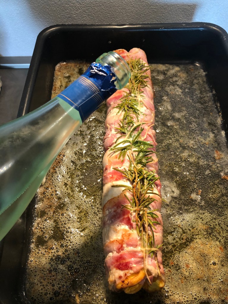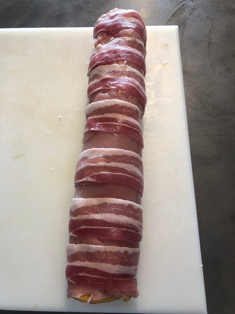 Piego su se stesso formando un bel rotolo che avvolgo nella pancetta