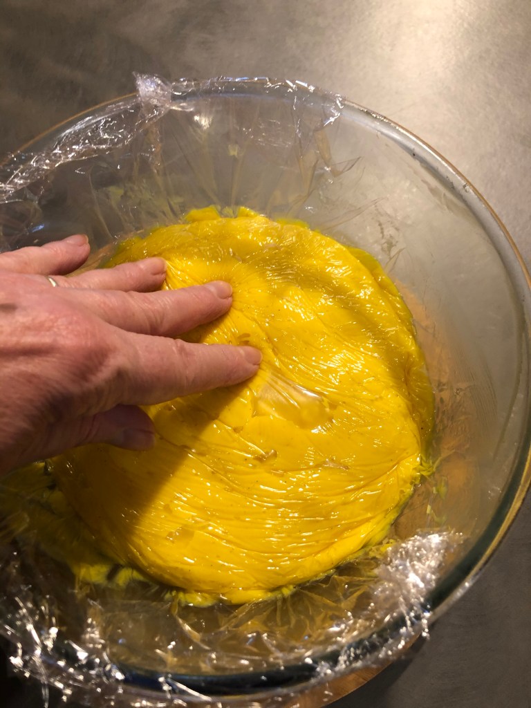 Lisciatela bene raffreddandola e abbassando così la temperatura, deve risultare lucida, la copro con pellicola a contatto