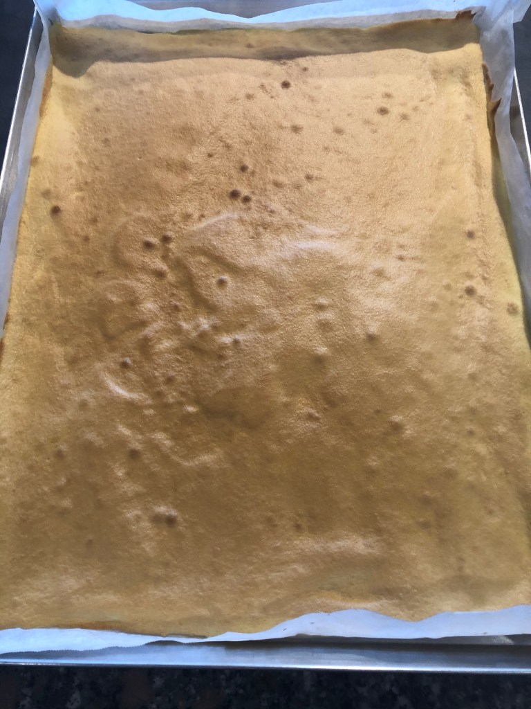Tolgo la teglia dal forno, copro con un foglio di carta forno e un canovaccio bagnato e strizzato e lascio raffreddare, in questo modo resterà morbido e non si romperà arrotolandolo
