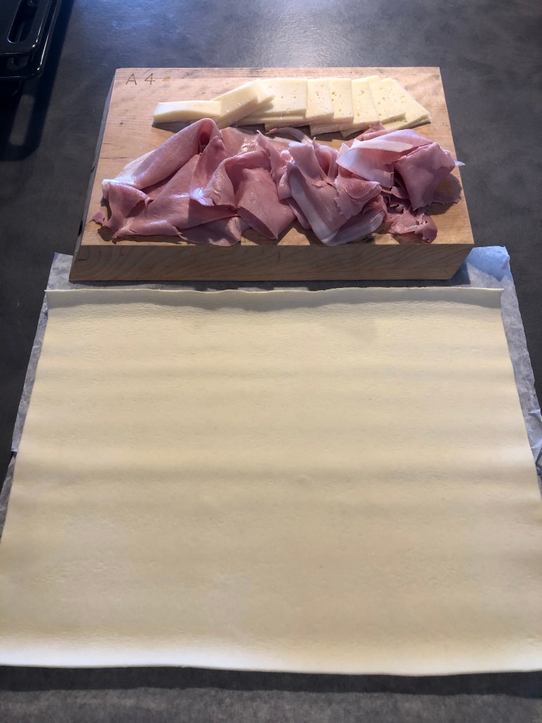 Taglio il formaggio a fettine poi a striscioline , attenzione se utilizzate la mozzarella, asciugatela benissimo altrimenti bagnerà la sfoglia rendendola molliccia
