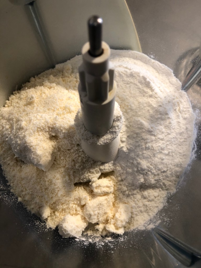 Nel boccale del mixer verso la farina con il parmigiano