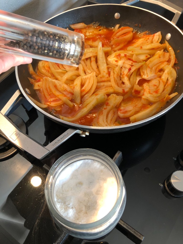 Aggiungo i finocchi e li lascio stufare per 10 minuti
