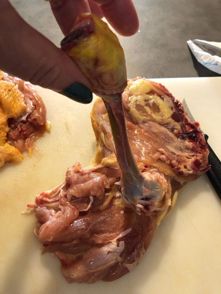 Giro la coscia e incido per la lunghezza estraendo l’osso staccando bene la polpa