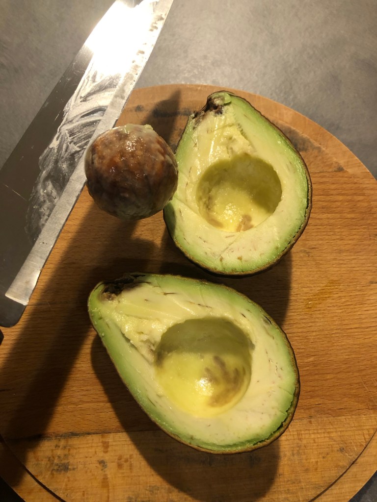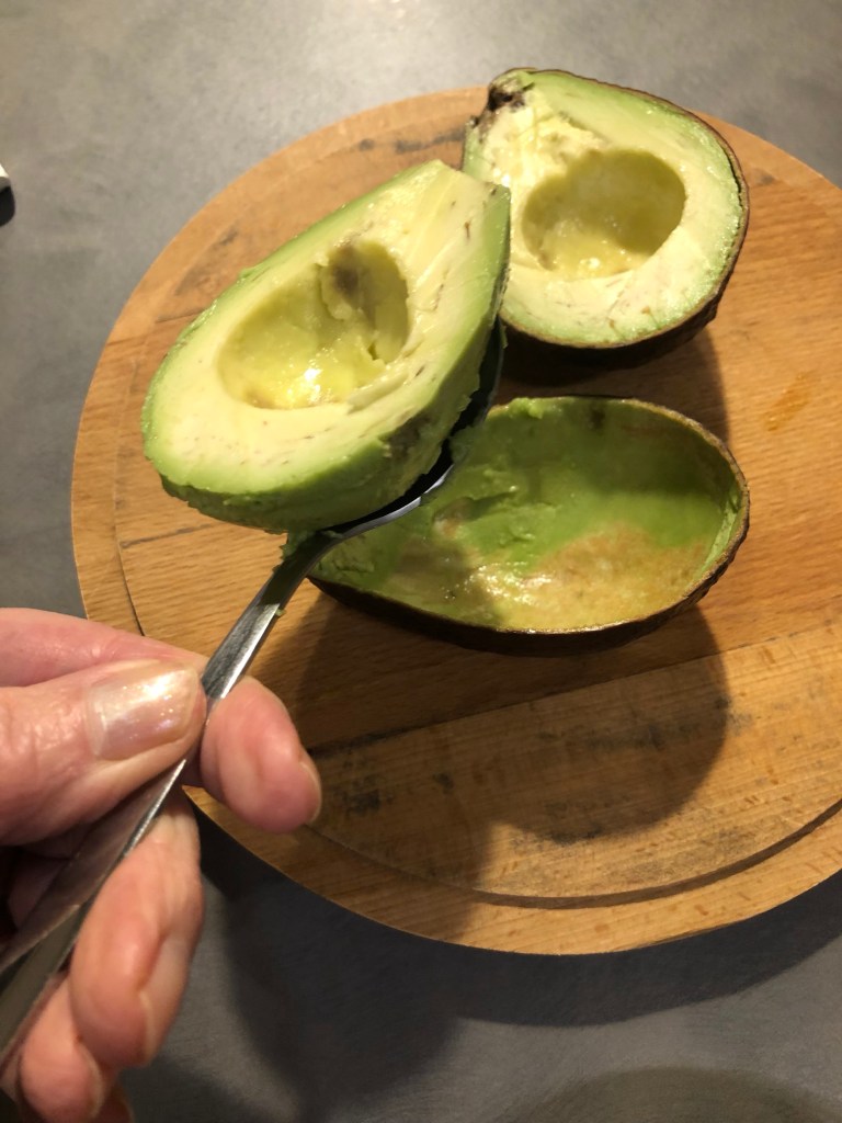 Taglio a metà l’avocado, con il coltello estraggo il nocciolo