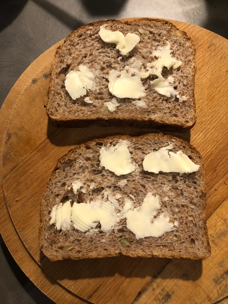 Imburro una fetta di pan e la faccio tostare su una piastra