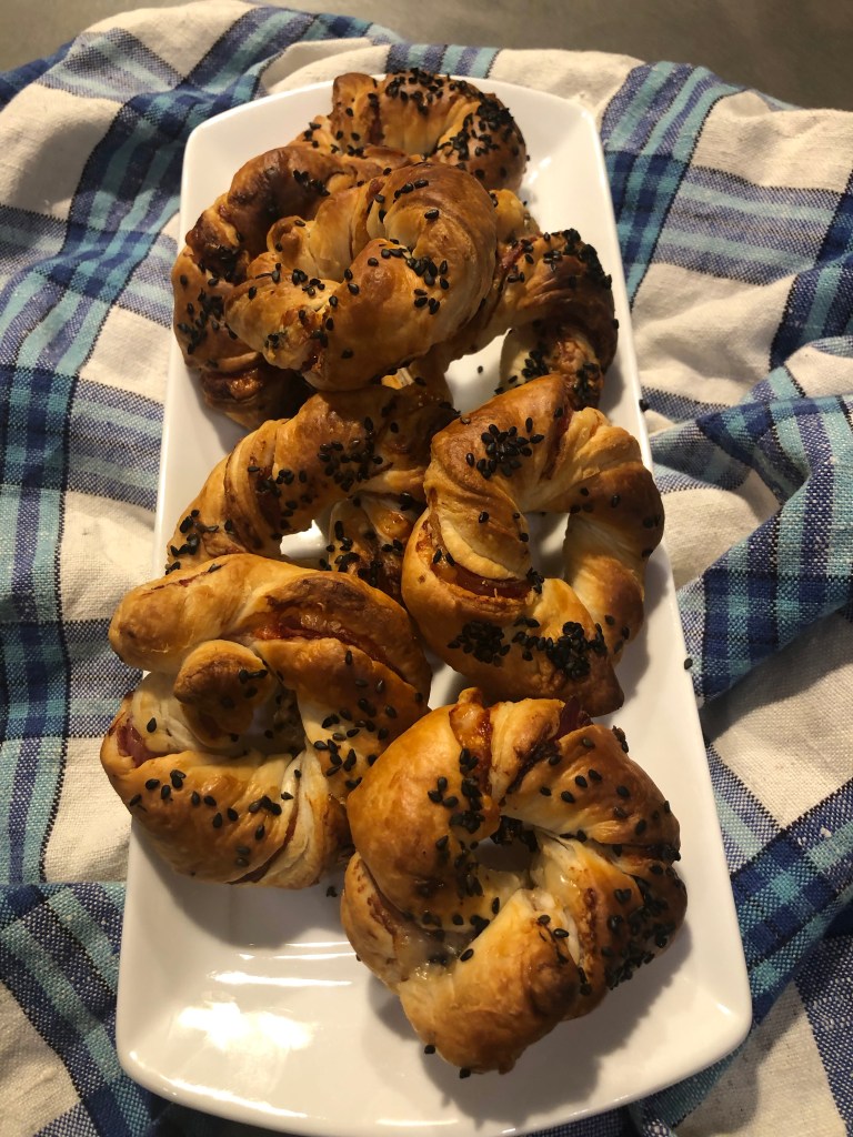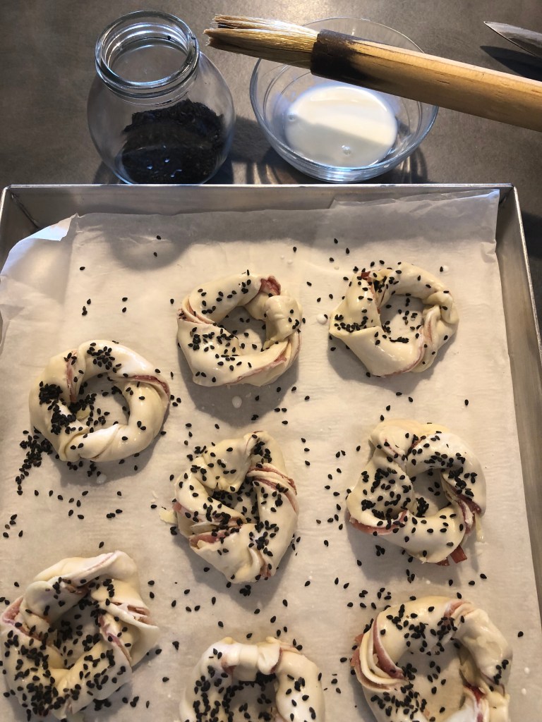 Li dispongo su una placca ricoperta di carta forno, spennello con latte e distribuisco i semi di sesamo o i semi che preferite