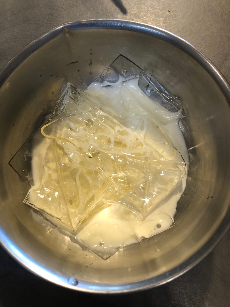Verso un pochino di panna presa dalla dose in un pentolino e quando é calda ma non bolle aggiungo la gelatina strizzata e la sciolgo bene