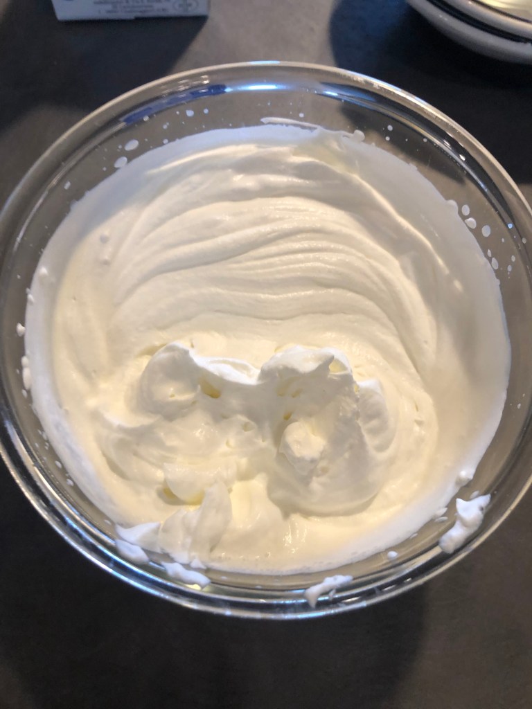 Incorporo delicatamente la panna montata mescolando dal basso verso l’alto per non smontarla