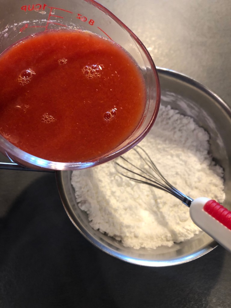 In un pentolino verso lo zucchero e l’amido di mais, aggiungo il succo sciogliendo bene eventuali grumi