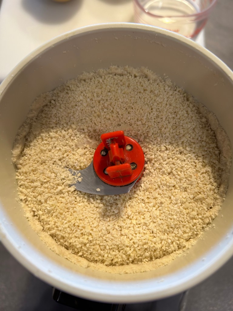Trito le mandorle che ho tenuto in freezer con un mixer