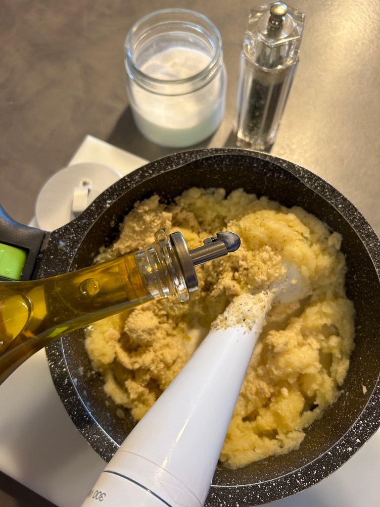 Deve risultare un puré soffice e morbido, se serve aggiungete ancora un goccio di latte