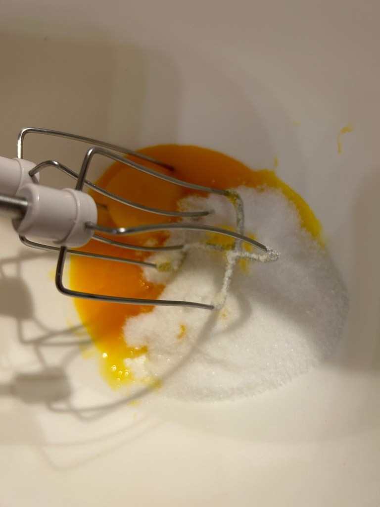 Separo i tuorli dagli albumi, monto i tuorli con lo zucchero