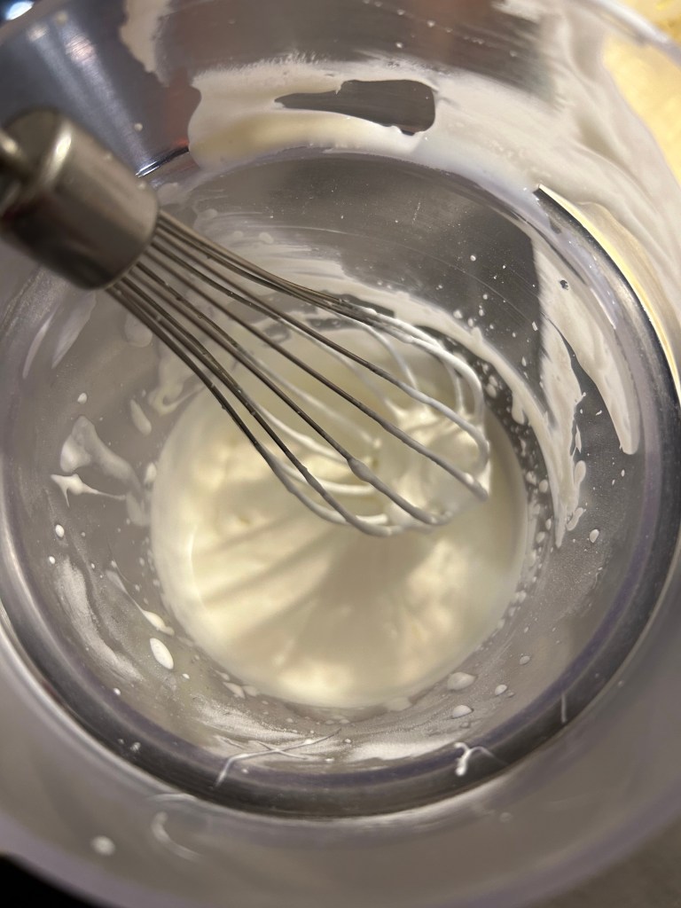 Quando sono ben montati aggiungo il mascarpone e lavoro ancora con le fruste