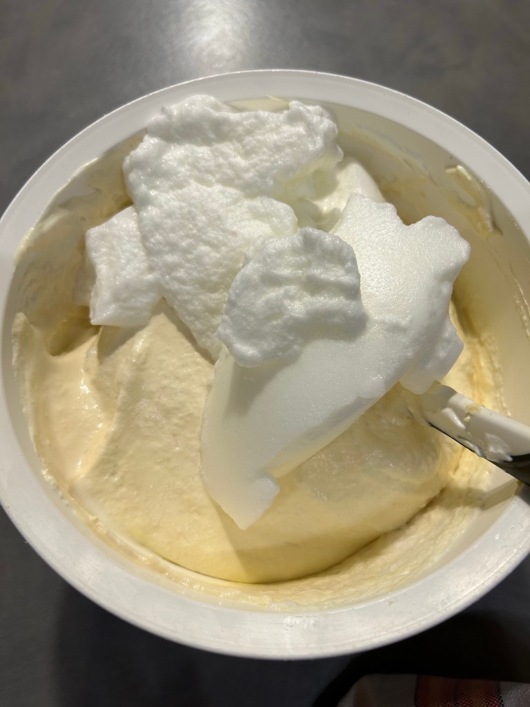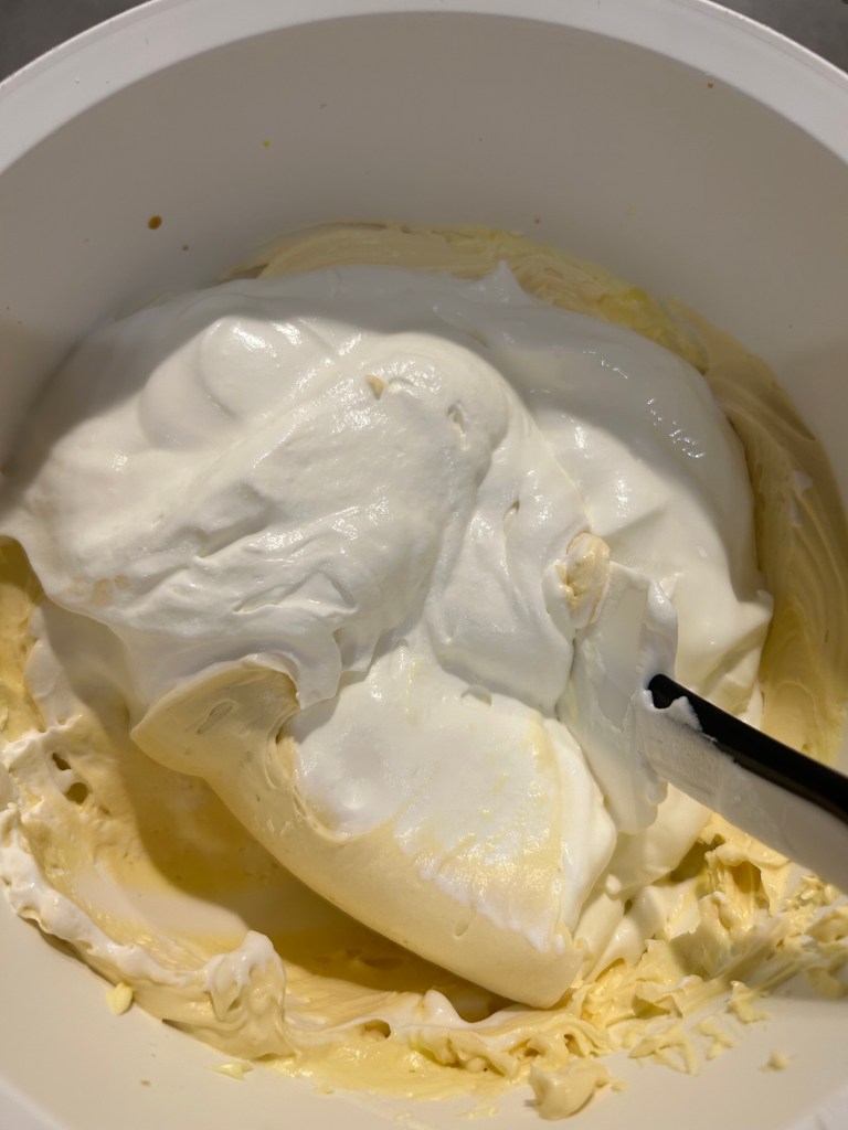 Le aggiungo alla crema mescolando delicatamente dal basso verso l’alto