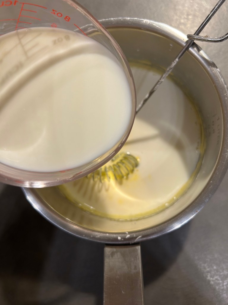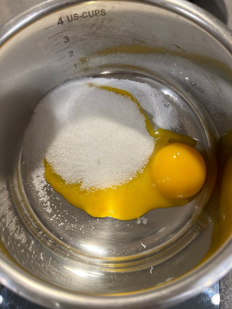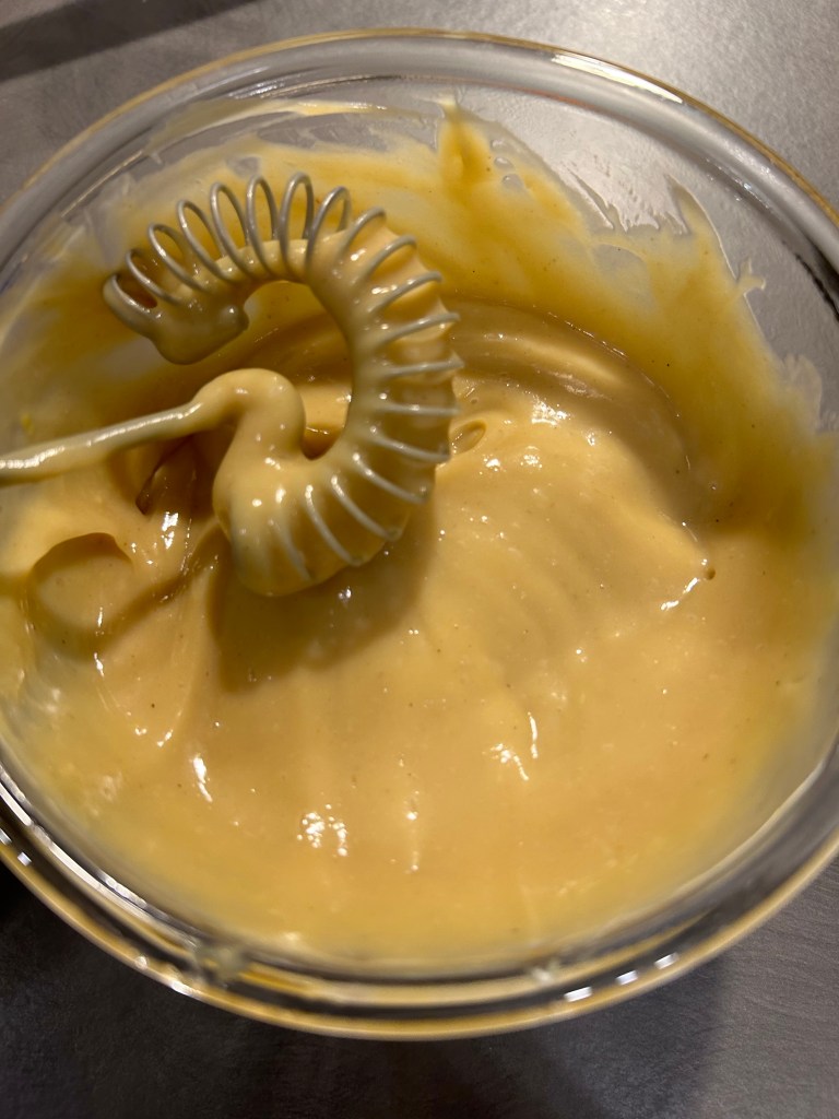 Lavoro con una frusta poi aggiungo l’amido di mais e mescolo bene