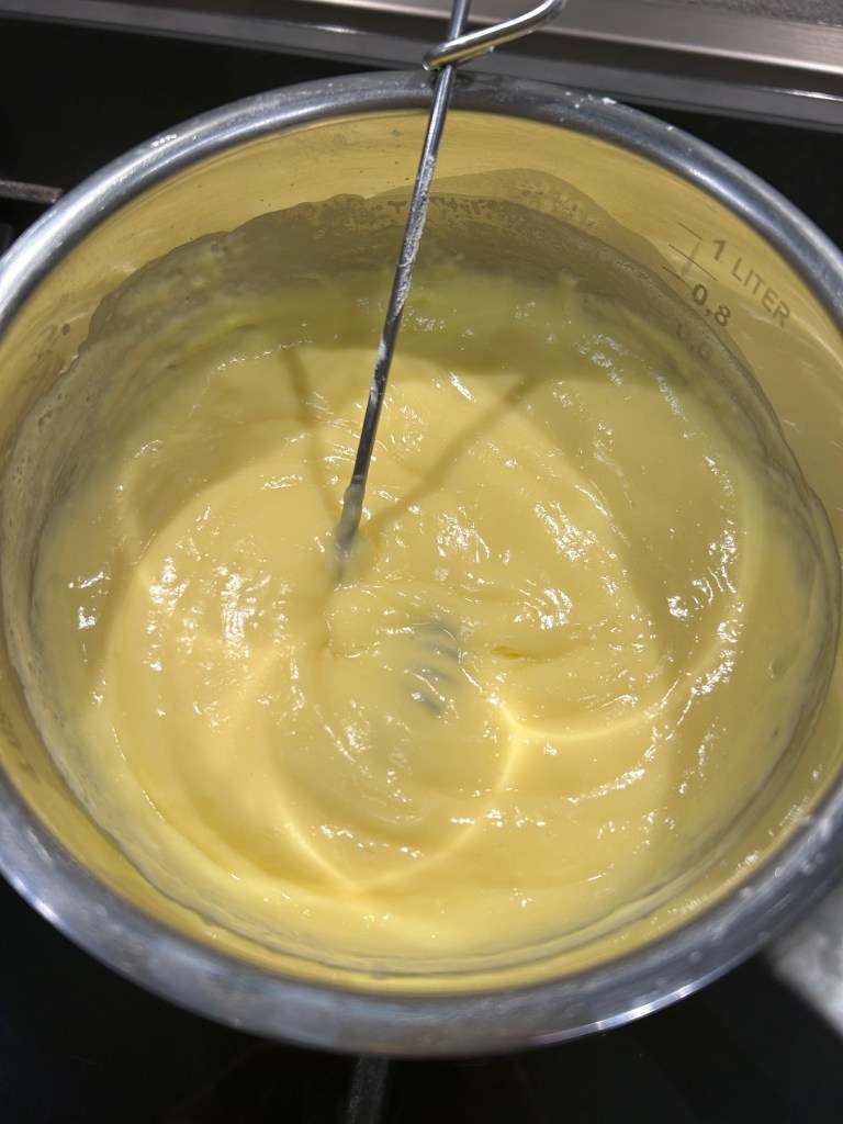 Ho preparato questa crema pasticcera ai marroni per farcire una millefoglie ai marron glacé, veramente buona ma ottima anche per farcire bignè, tartellette, cannoncini ecc….