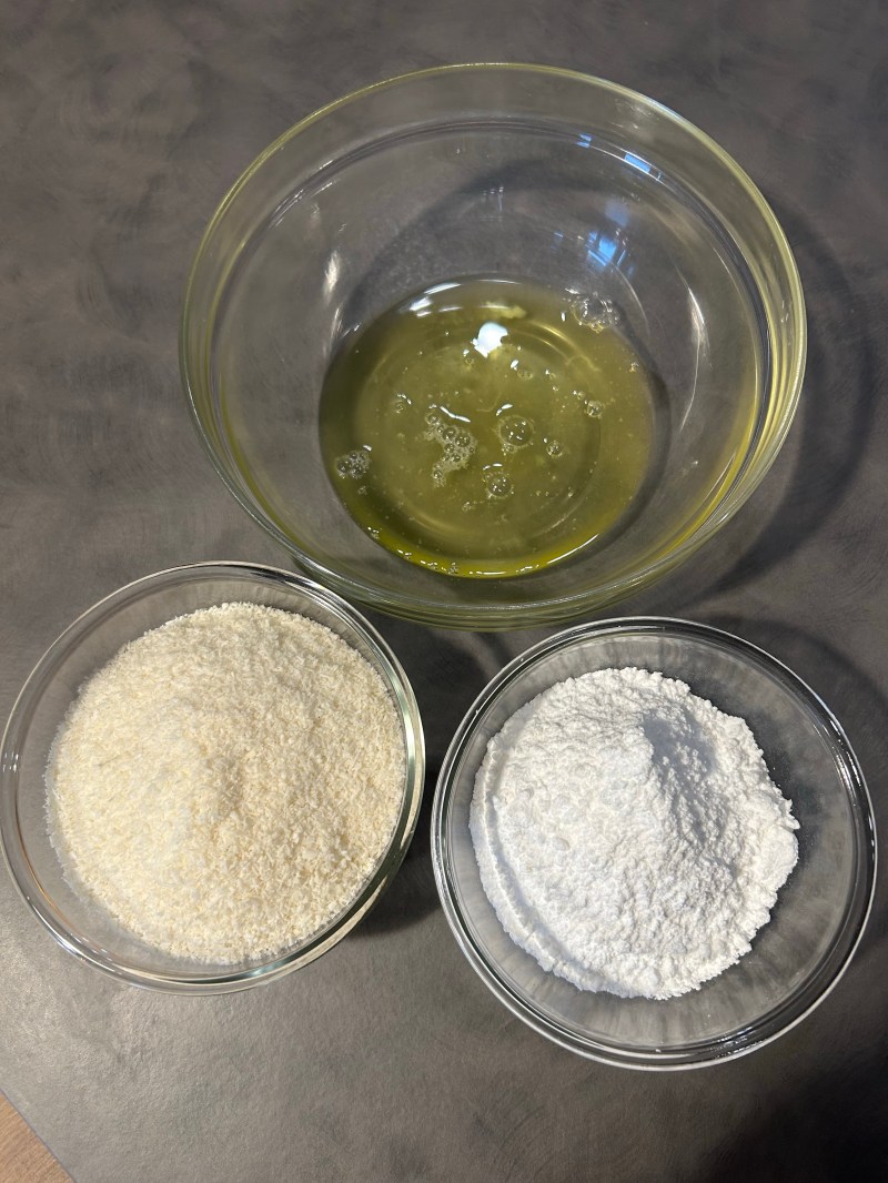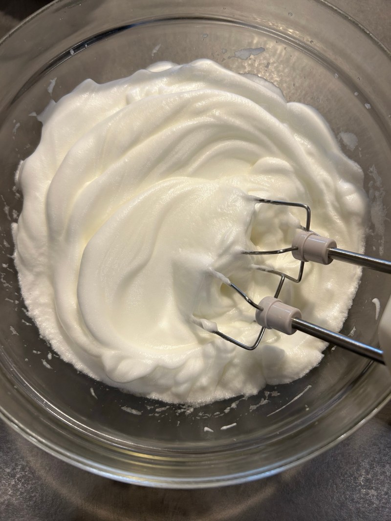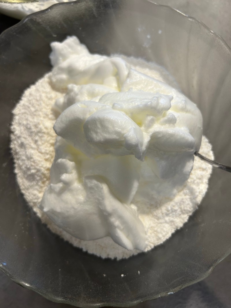 4 ALBUMI (170/ 180 GR)Monto gli albumi a neve ben ferma , mi raccomando tenuti a temperatura ambiente, utilizzo le fruste elettriche Mescolo il cocco rapé e lo zucchero a velo