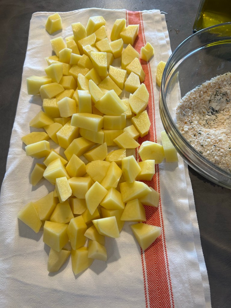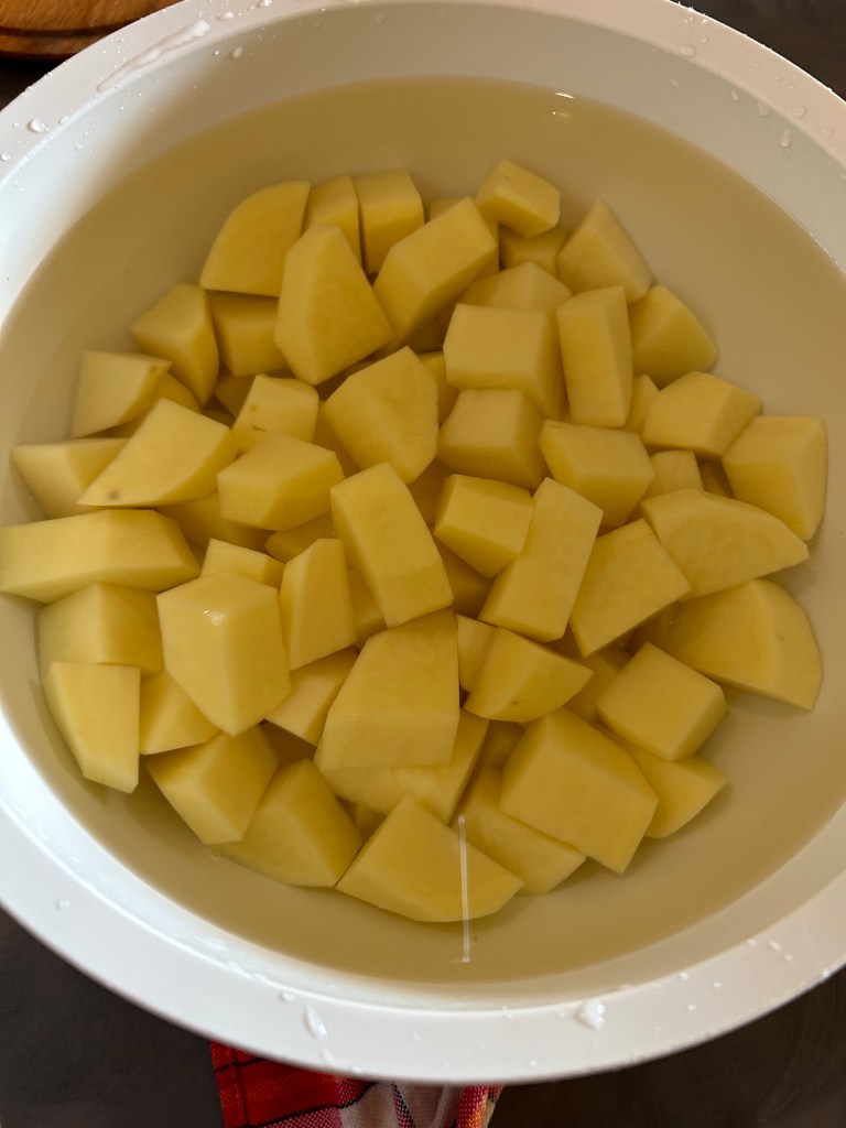 Scolo le patate dall’acqua e le tampono con un canovaccio