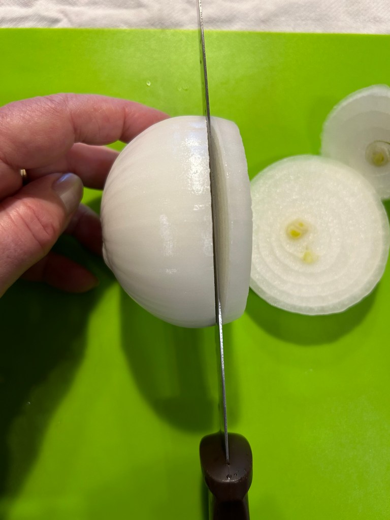 Sbuccio e affetto una la cipolla con uno spessore di circa 1 cm