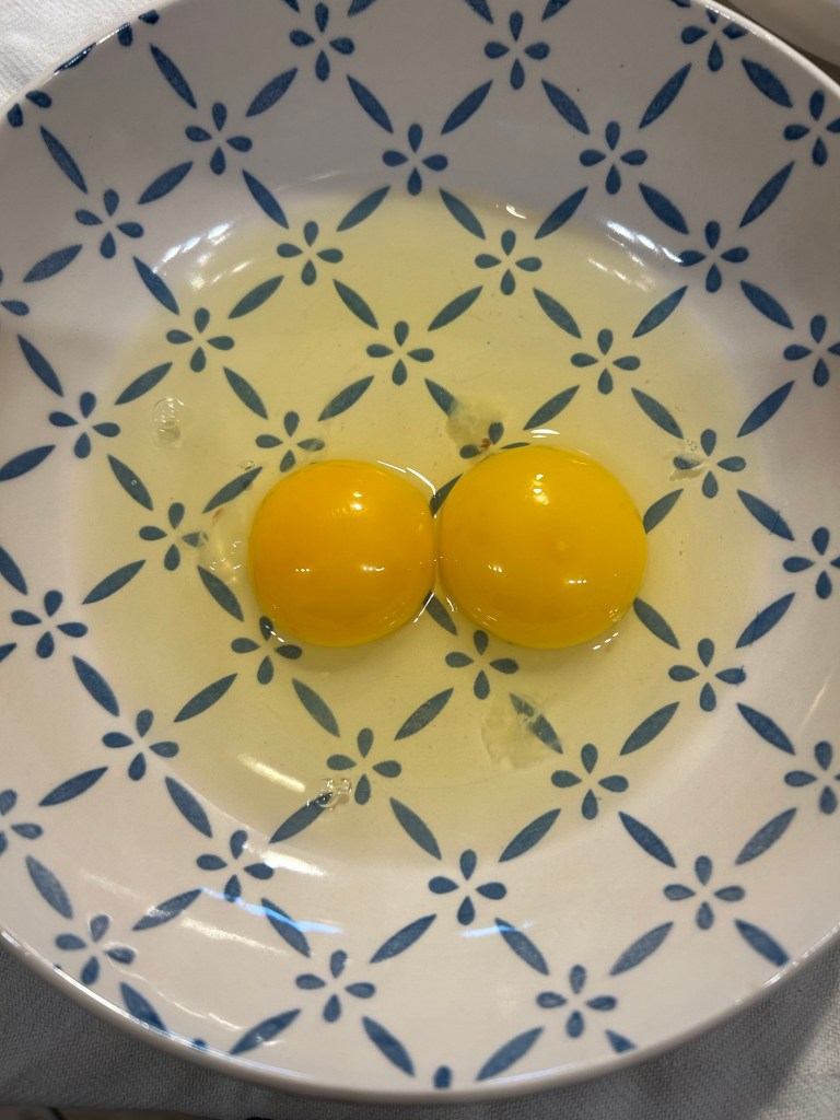 In un piatto rompo 2 uova e le batto con la forchetta