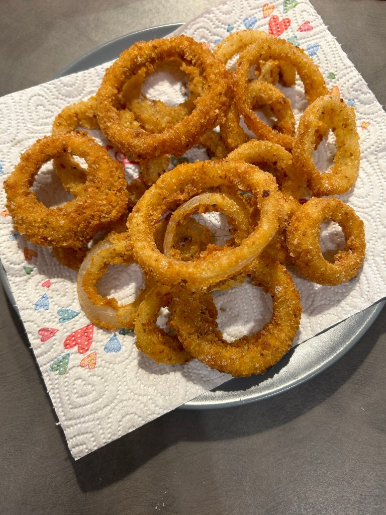 Buonissime golose come ogni cosa fritta, croccanti, un ottimo contorno a costo bassissimo ma di grande resa, con una cipolla grande sono venute 2 porzioni abbondanti ma fatene in abbondanza perché spariranno velocemente