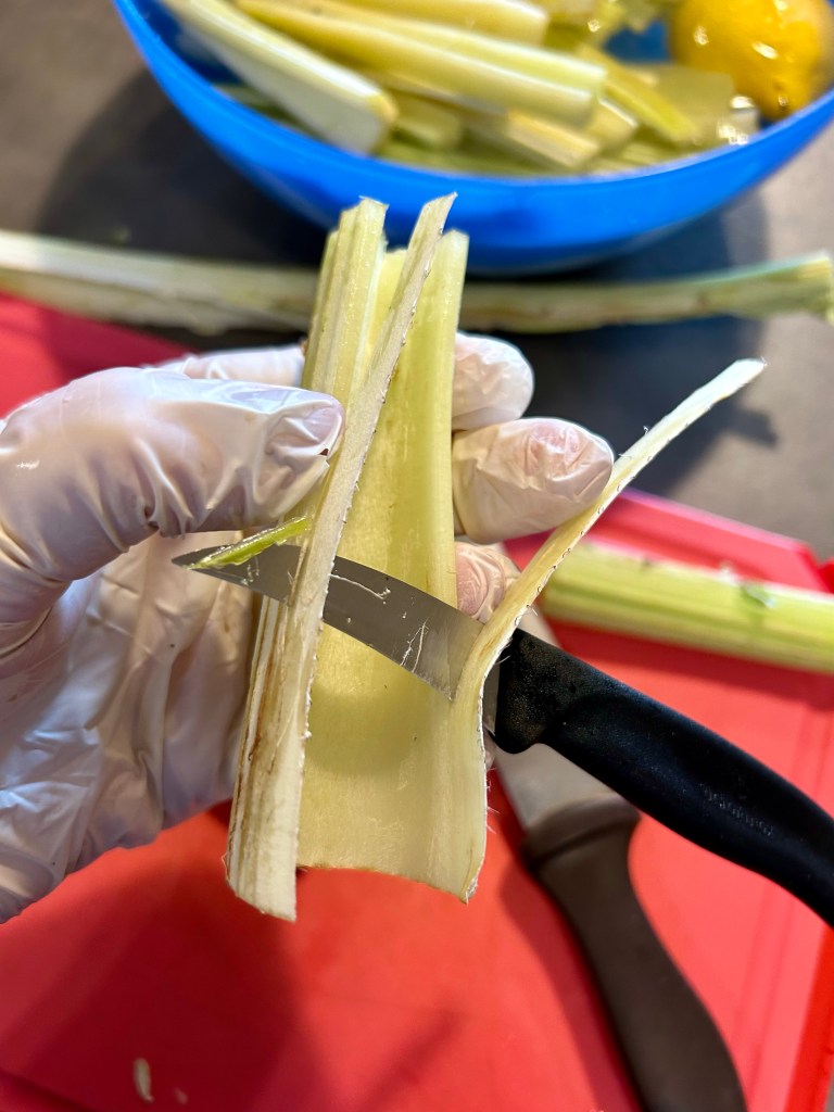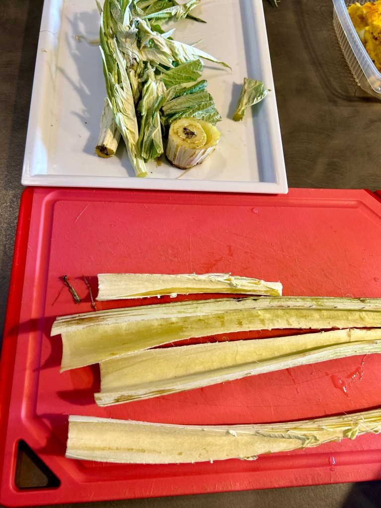 Inizio con la pulizia dei cardi eliminando le punte, il fondo e dividendo le coste