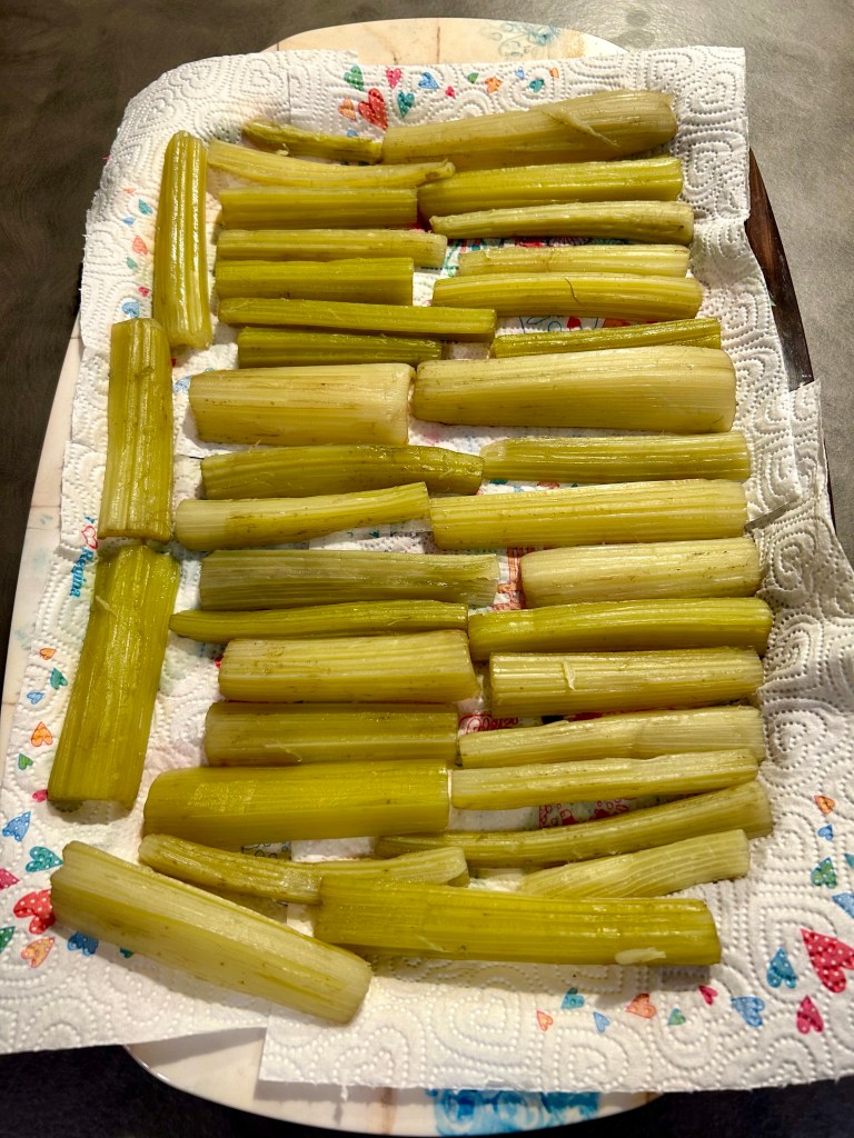 Non avevo mai cucinato i cardi, me li hanno regalati quindi essendo tanti li ho preparati in due versioni, impanati e “CARDI AL FORNO CON BESCIAMELLA” la ricetta la trovate nel blog, buonissimi, croccanti dal retrogusto di carciofi, peccato non averli cucinati prima