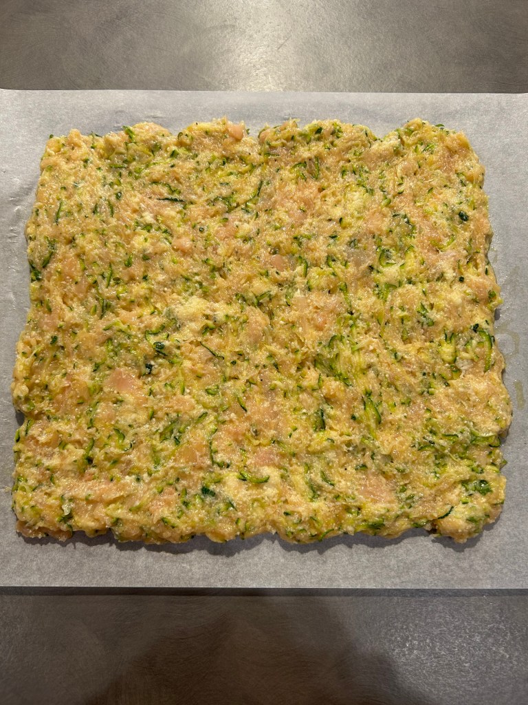 Lavo, spunto 2 zucchine e le grattugio con una grattugia a fori larghi, le metto in un colino, salo leggermente e le lascio scolare per almeno 15 minuti, in modo da eliminare l’acqua di vegetazione
