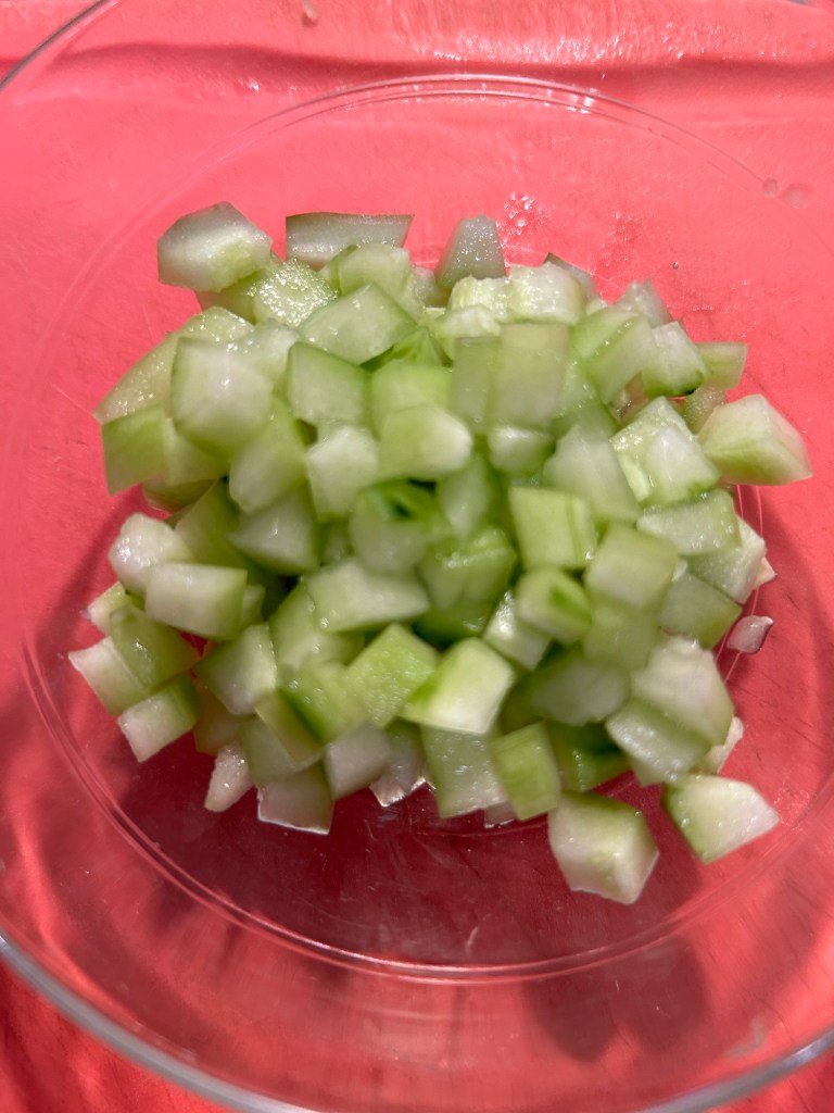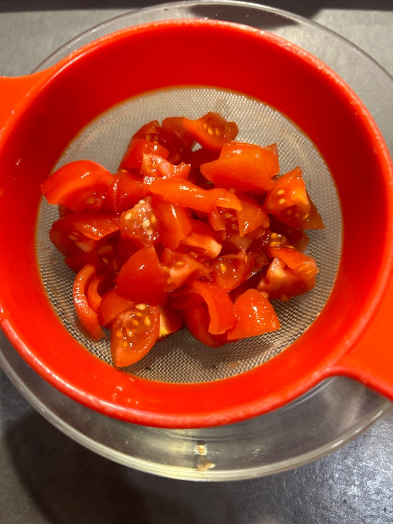 Lo taglio a cubetti piccoli e lo metto a scolare, cercate di tagliare tutti gli ingredienti della stessa dimensione
