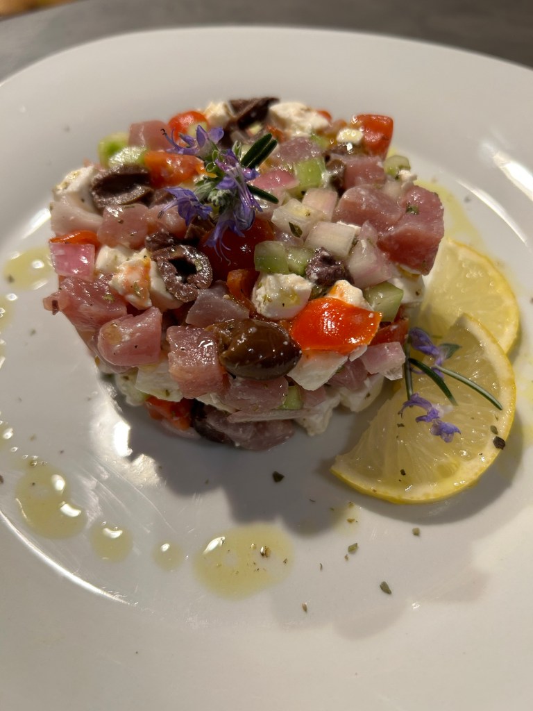 Un buonissimo antipasto fresco e leggero, attenzione al tonno acquistate tranci abbattuti per evitare cariche batteriche, poi é facilissimo, solo un po’ di pazienza nel taglio regolare degli ingredienti, di sicuro farete un figurone