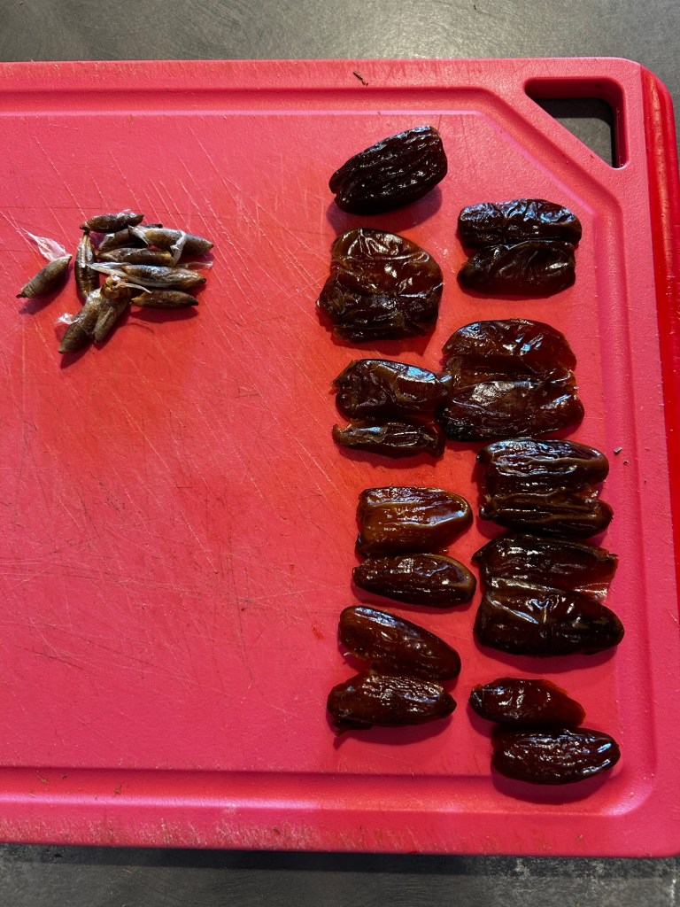 Apro i datteri ed elimino il nocciolo e li appiattisco