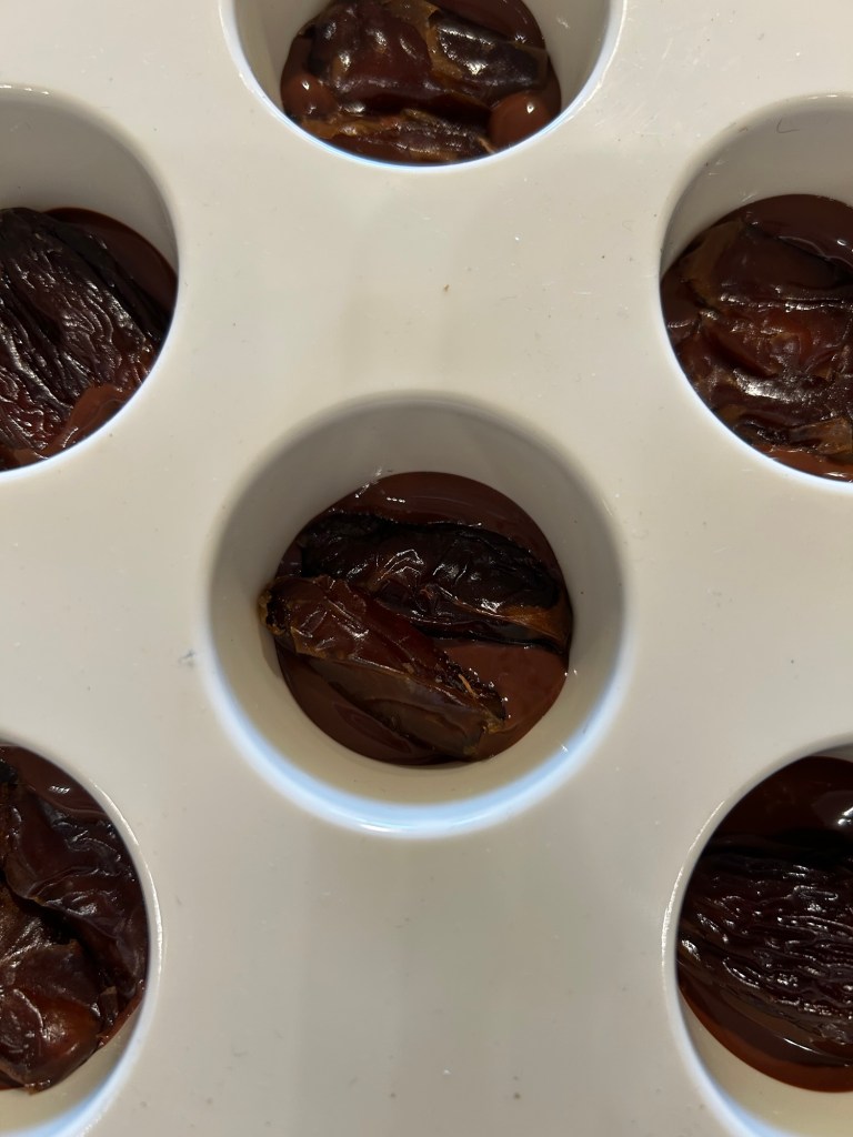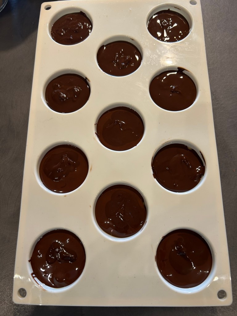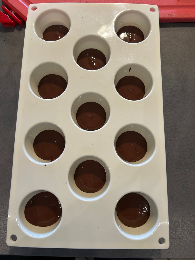 Utilizzo uno stampo in silicone, sarà più facile toglierli una volta freddi, metto un cucchiaino di cioccolato fuso in ogni incavo