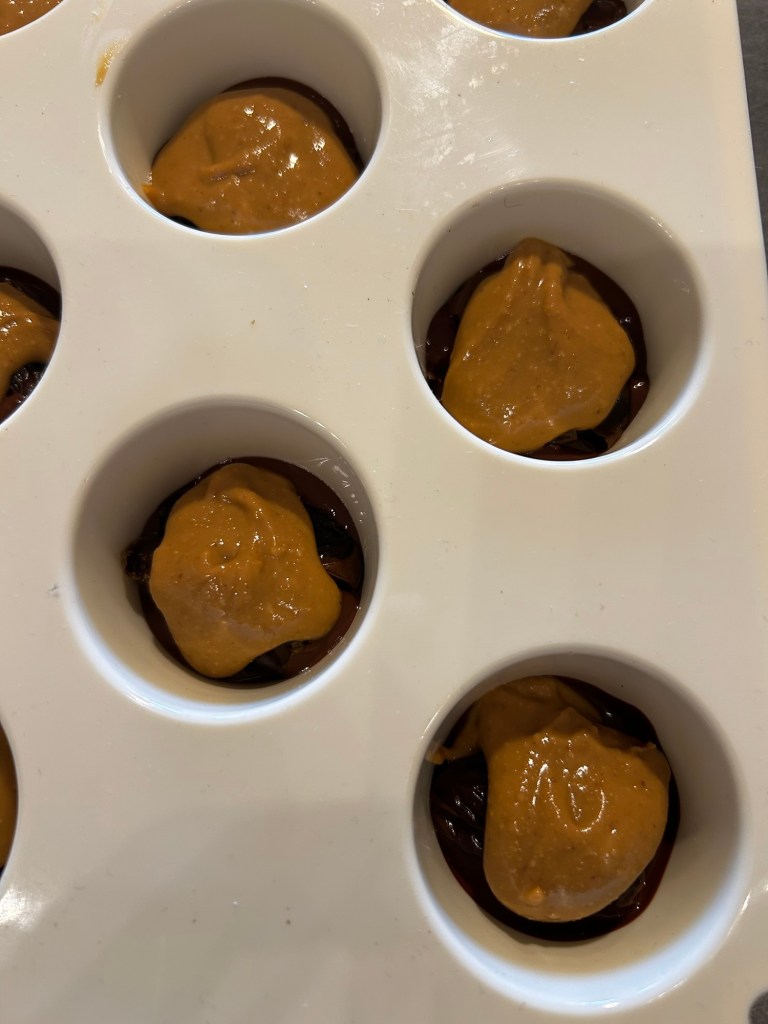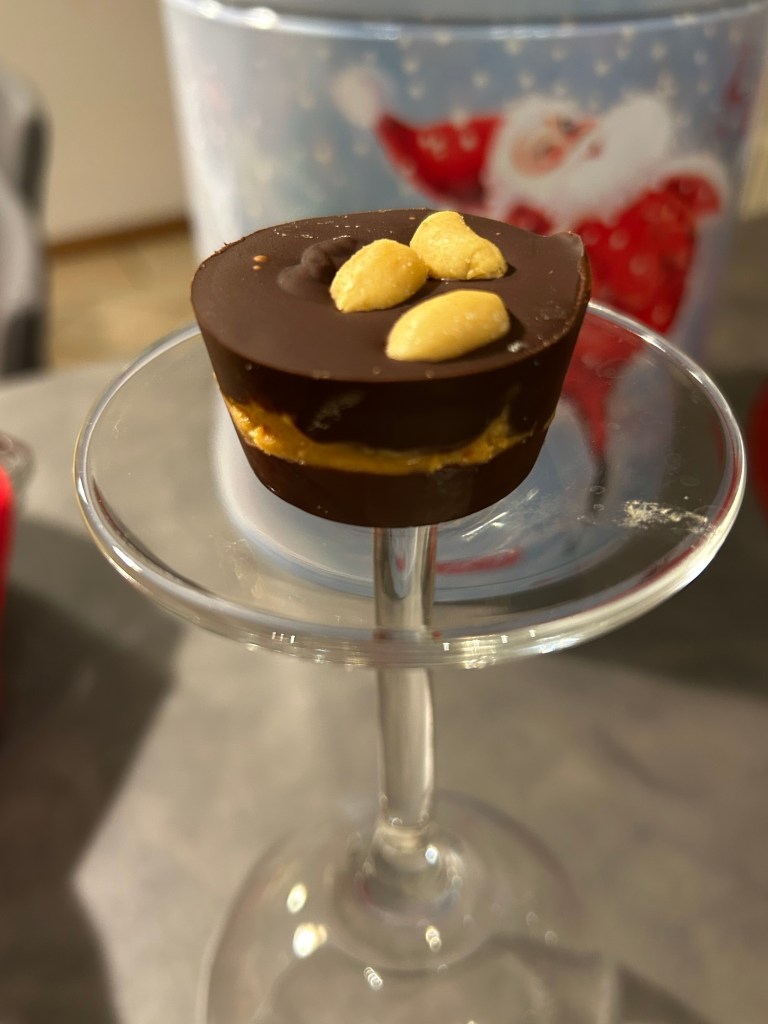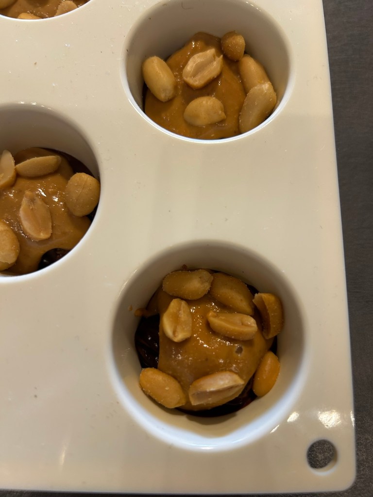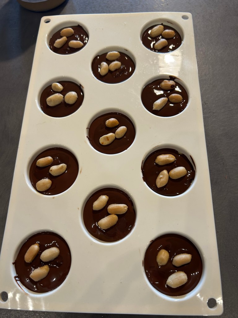 Termino con 3 arachidi e metto in frigorifero un paio d’ore basteranno a solidificare il cioccolatino, li tolgo dallo stampo, li appoggio in pirottini di carta